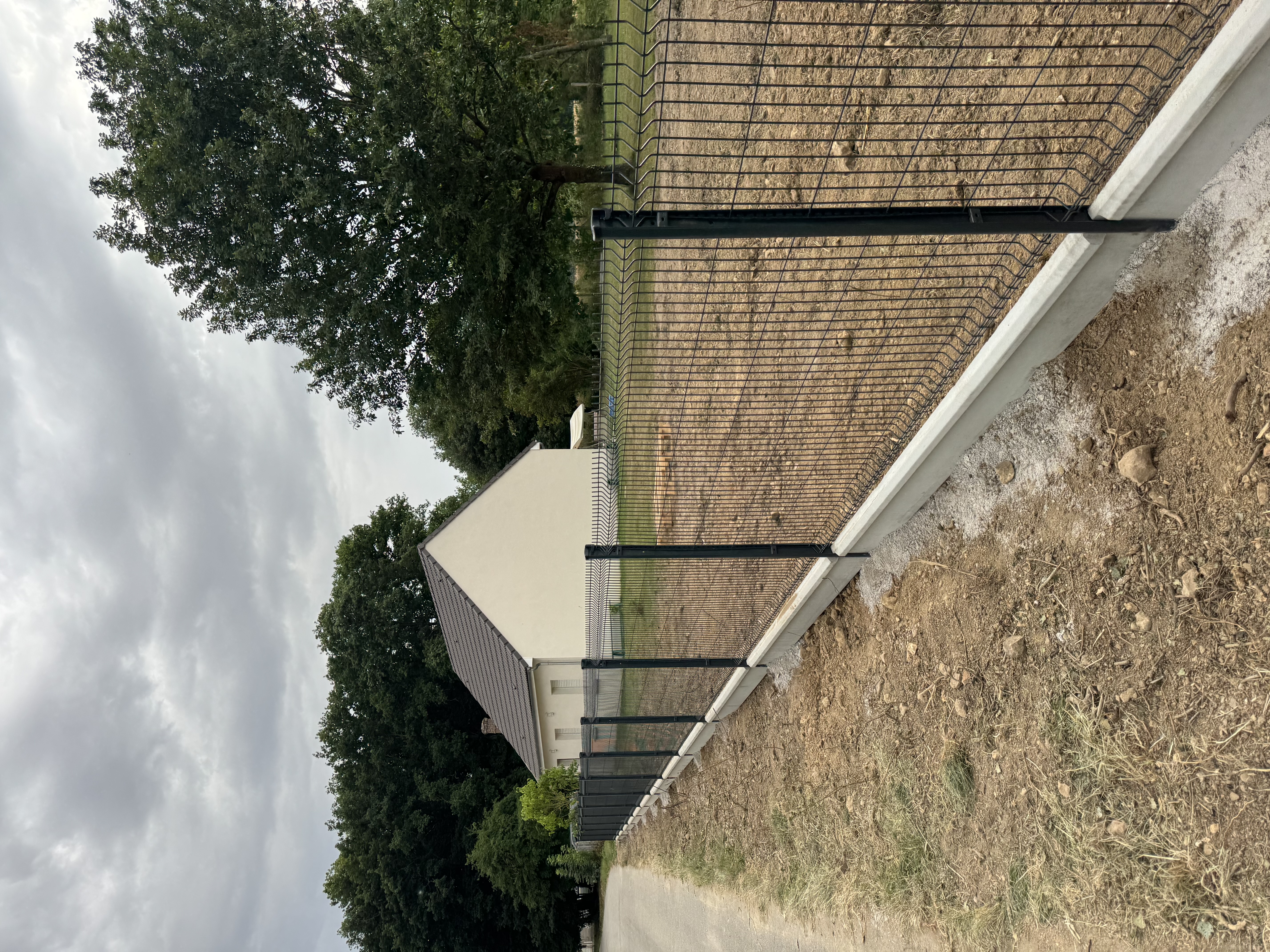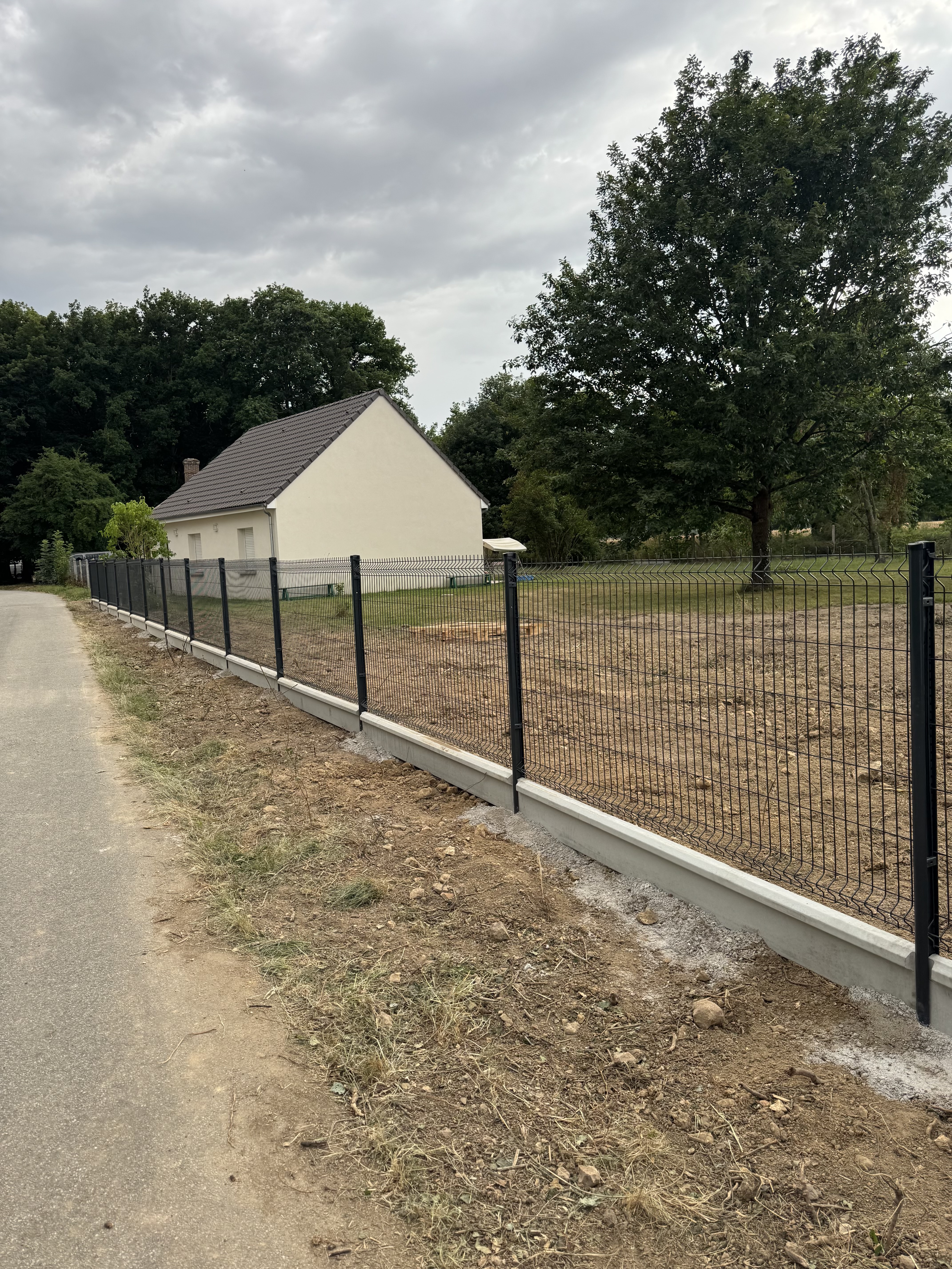 clôture panneau rigide avec plaque au thieulin de soubassement, béton