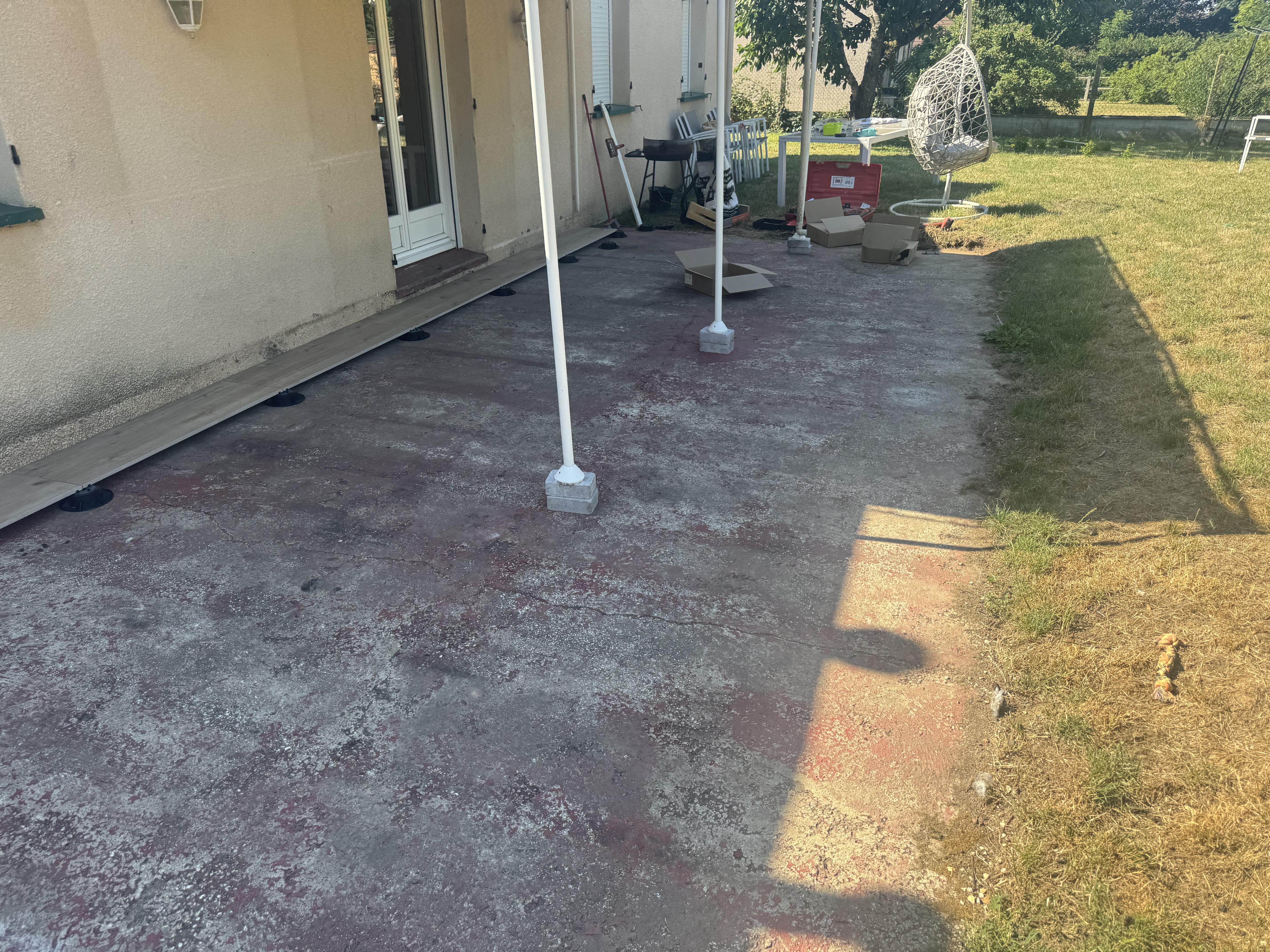 Pose dune terrasse carrelage 2 cm sur plot Fontaine la guyon