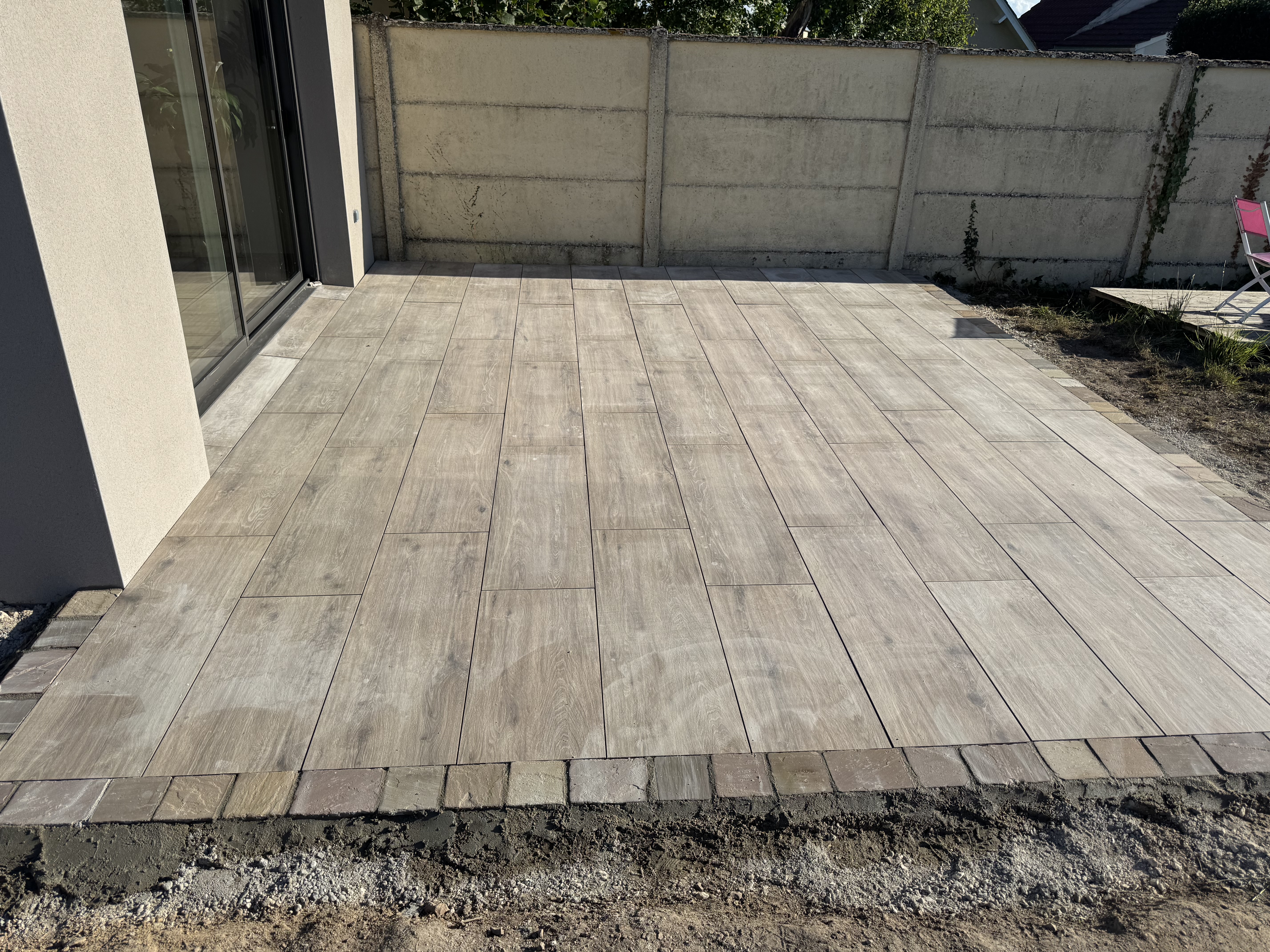 Terrasse sur plot carrelage 2cm Fontaine la Guyon proche courville